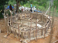 Here are some photos of the construction of a octagonal deposit tank built by a fellow volunteer. While the shape of the deposit tank can vary, the following photos are a great overview of formwork and the construction process.